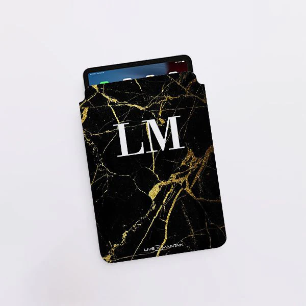 Personalised Black x Gold Marble Initials Saffiano Leather Tablet/Laptop Sleeve